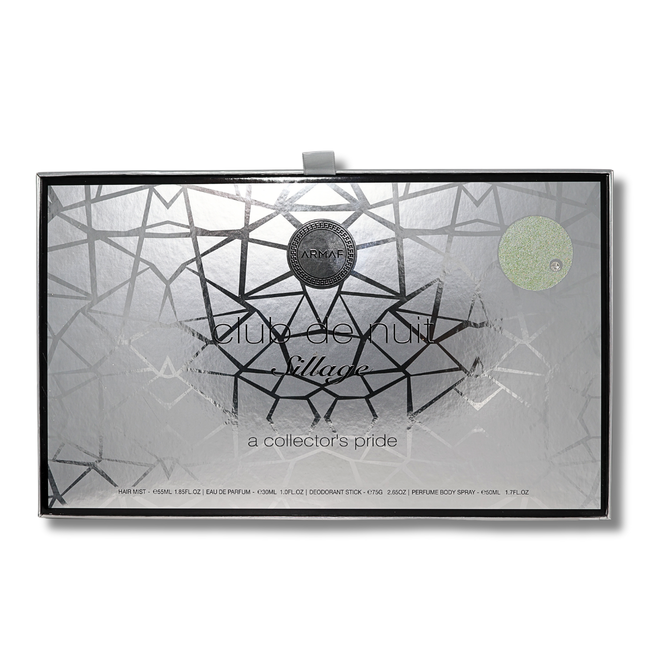 Elevate your fragrance experience with the Armaf Club De Nuit Sillage 4-Piece Gift Set, a luxurious collection designed for those who appreciate a harmonious blend of freshness and sophistication. Perfect for both men and women, this set offers a complete grooming routine infused with the captivating scent of Club De Nuit Sillage.