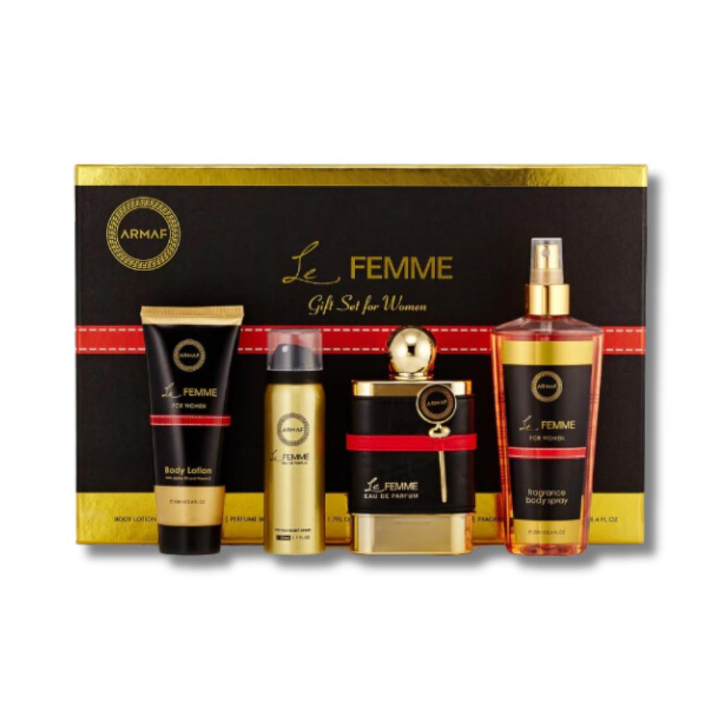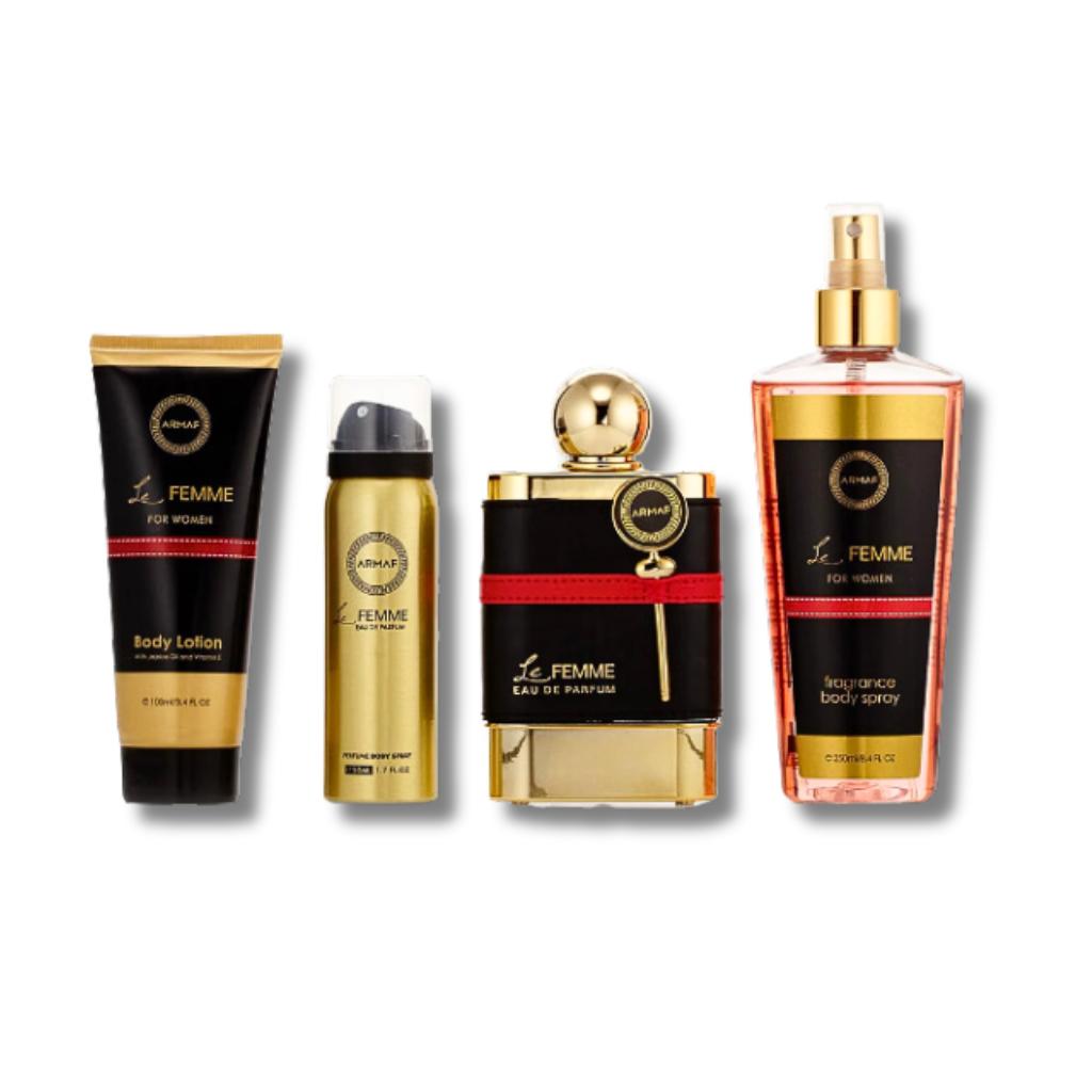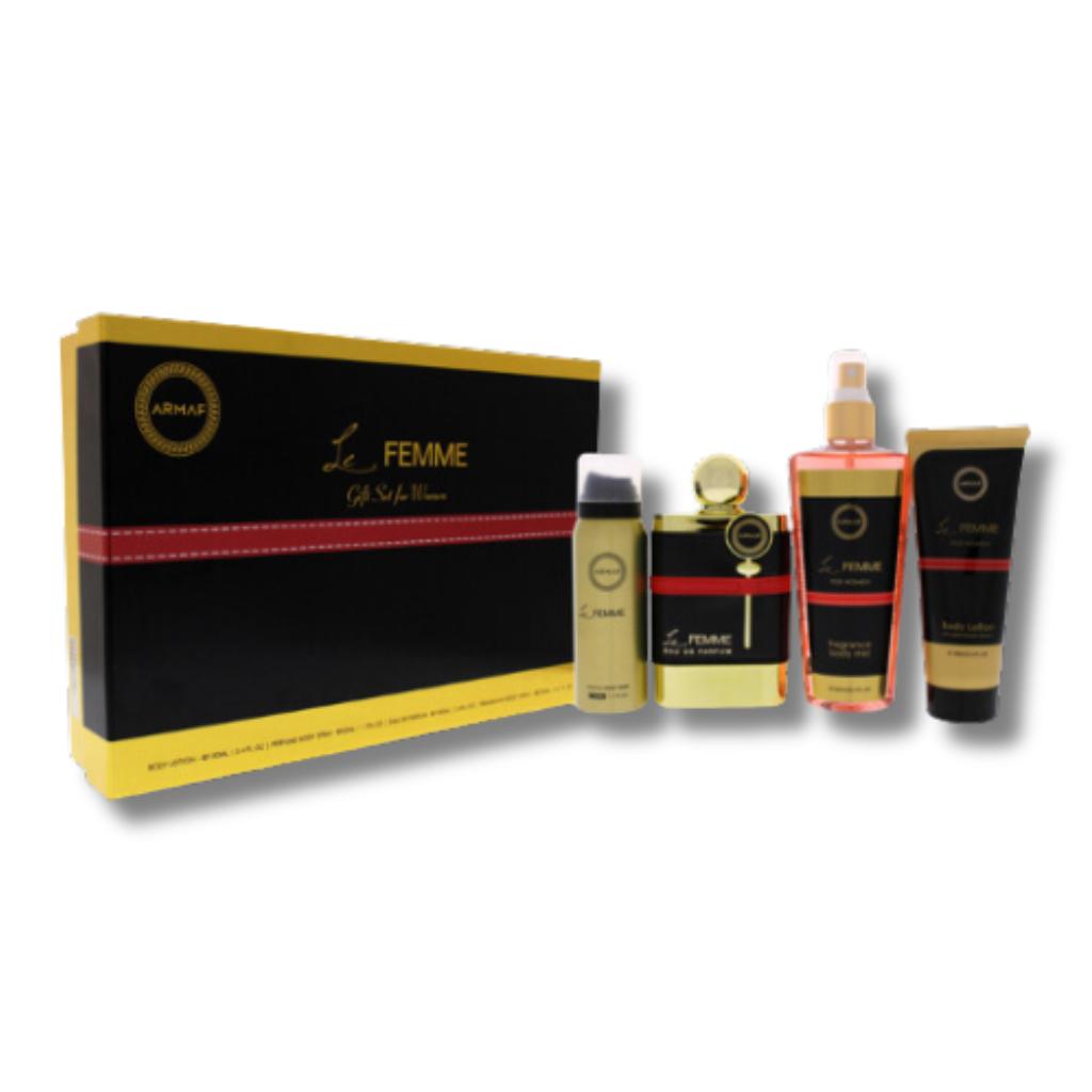Armaf Le Femme 4-Piece Set For Women Eau De Parfum 3.4FL.OZ, Body Lotion 3.4FL.OZ, Body Mist 8.4FL.OZ