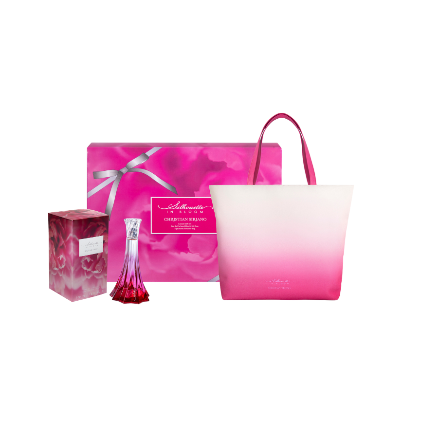 This Christian Siriano Silhouette In Bloom 2 Gift Set Eau De Parfum is a delightful fragrance package that includes a 3.4 fl.oz bottle of perfume along with a stylish pink tote bag.