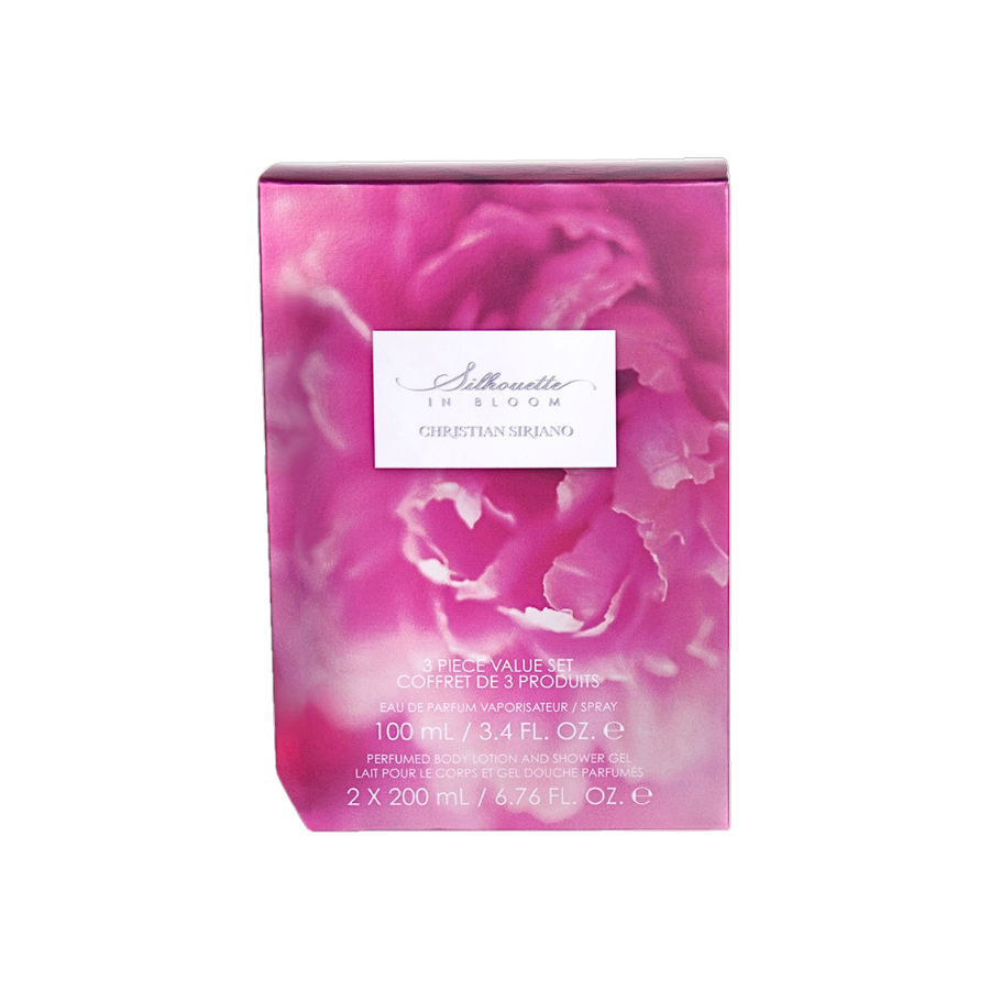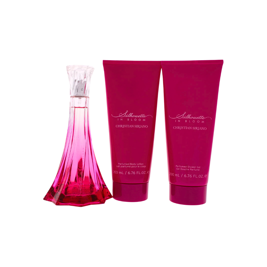 Experience the enchanting allure of Christian Siriano Silhouette In Bloom fragrance set, featuring Eau De Parfum, Body Lotion, and Shower Gel.