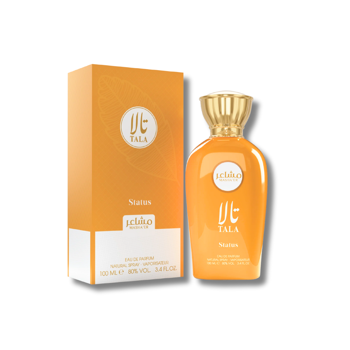 Faan Mashaer Tala Status is a modern feminine fragrance crafted for women who value elegance. A fruity opening leads into romantic florals and settles into musk and amber for a graceful finish.