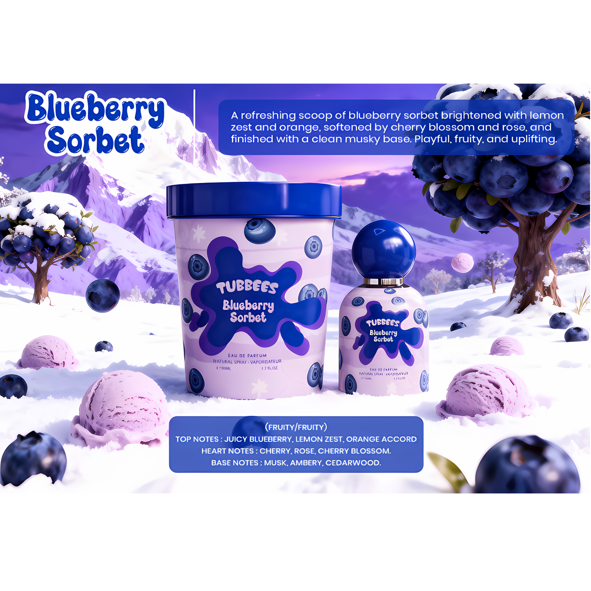 Indulge in a burst of freshness with Tubbees Blueberry Sorbet by Le Grandeur — a fragrance that captures the carefree joy of summer in every spritz. Bright, juicy, and irresistibly playful, this scent is a delicious balance of fruity sweetness and airy elegance.