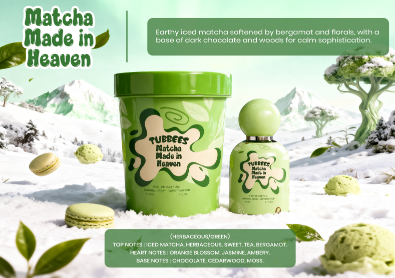 Indulge in TUBBEES MATCHA MADE IN HEAVEN 50ML BY LE GRANDEUR, a luxurious blend of earthy matcha, refreshing bergamot, delicate florals, and dark chocolate, finished with grounding notes of woods. This sophisticated fragrance will transport you to a serene, elevated state of mind.