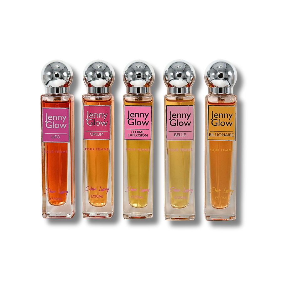 Jenny Glow 5 Pieces Travel Set (Ufo, Opium, Floral Explosion, Belle & Billionaire) EDP 1.0FL.OZ For Women