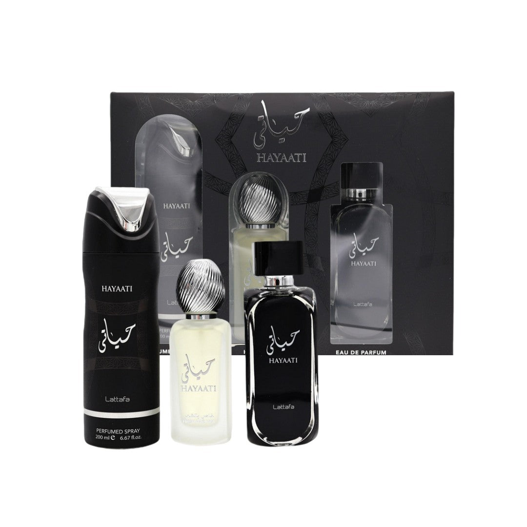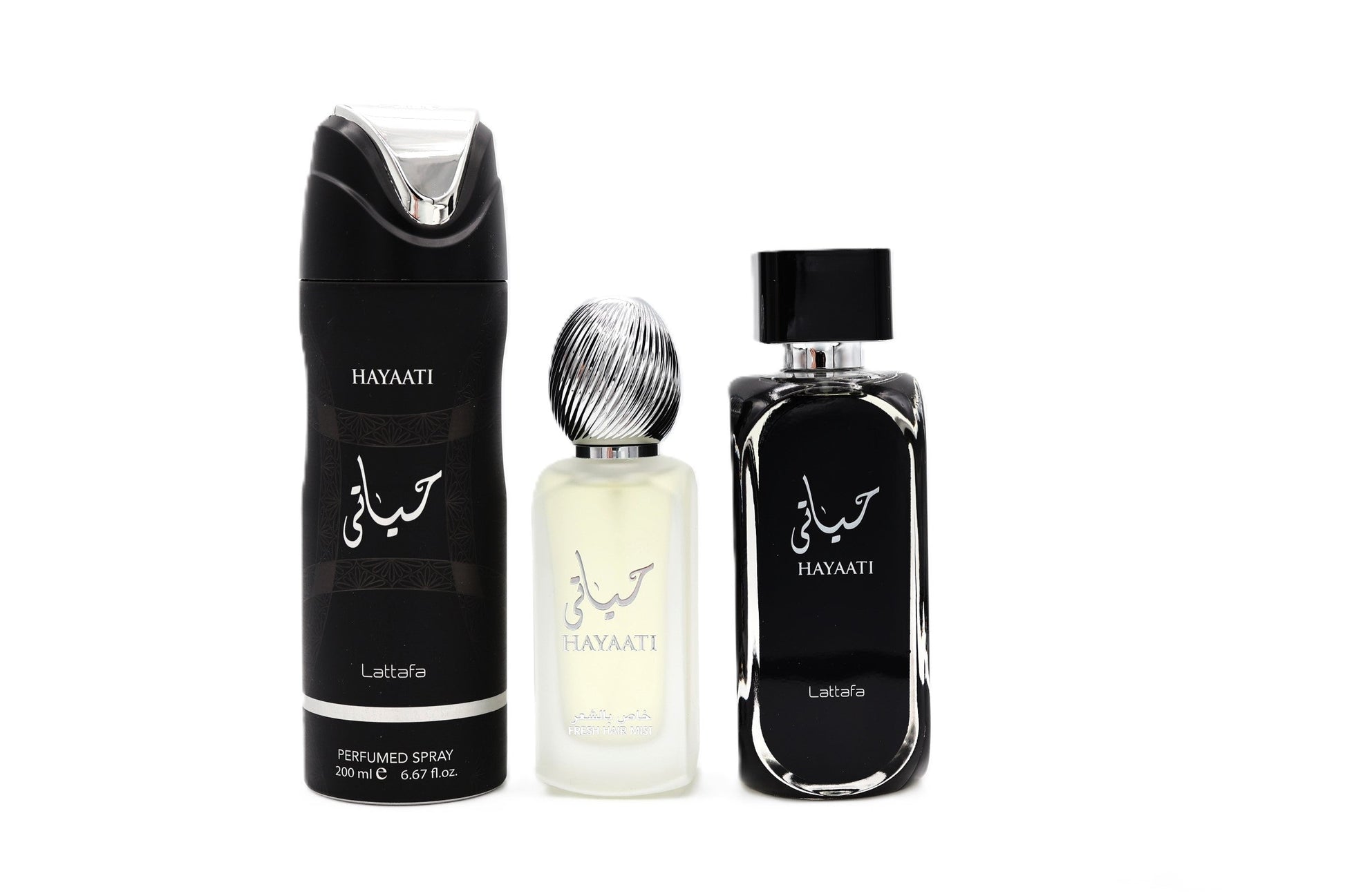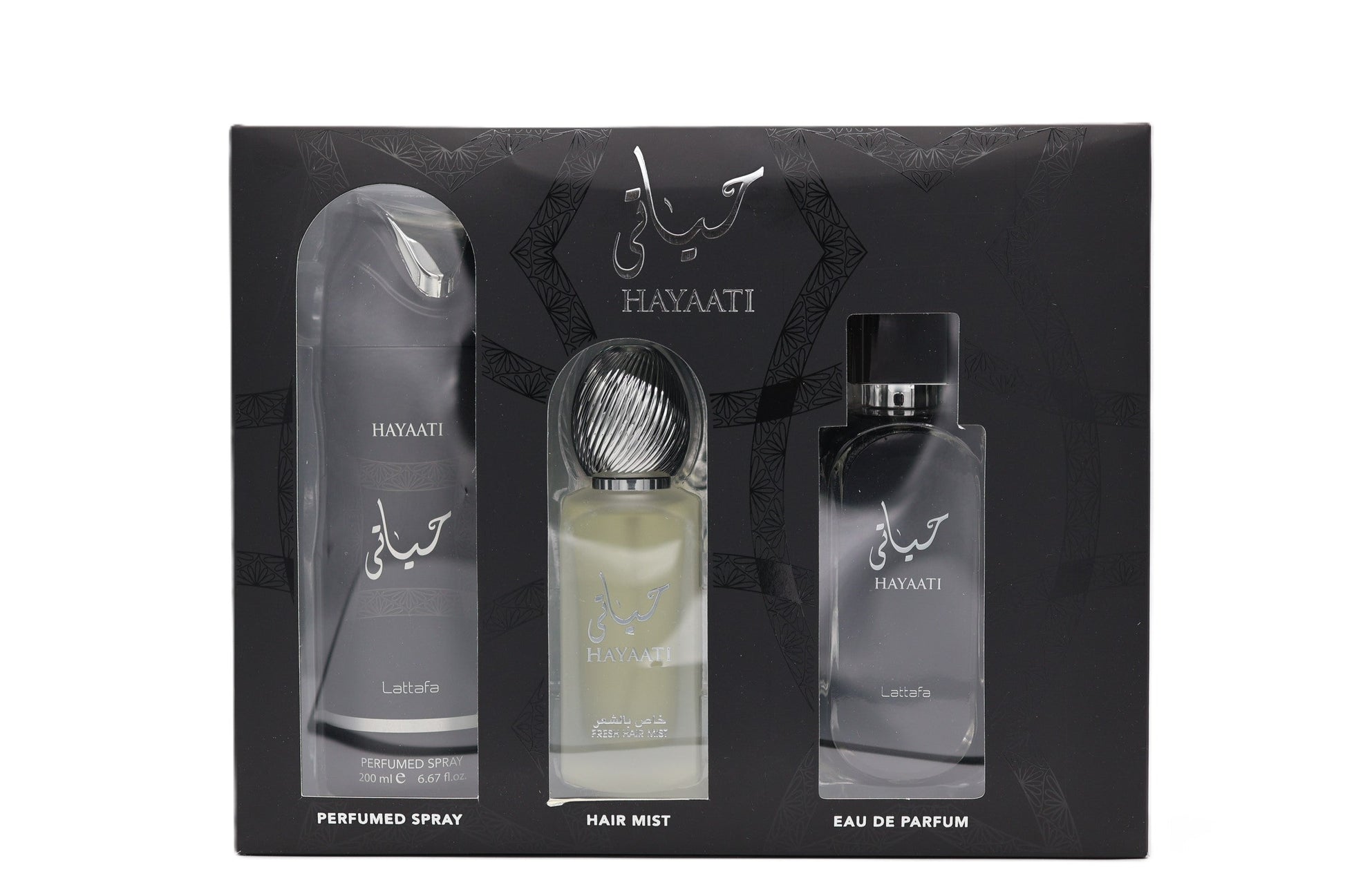 Lattafa hayaati Collection Eau De Parfum 3.4FL.OZ, DEOdorant 6.67fl.oz & Hair Mist