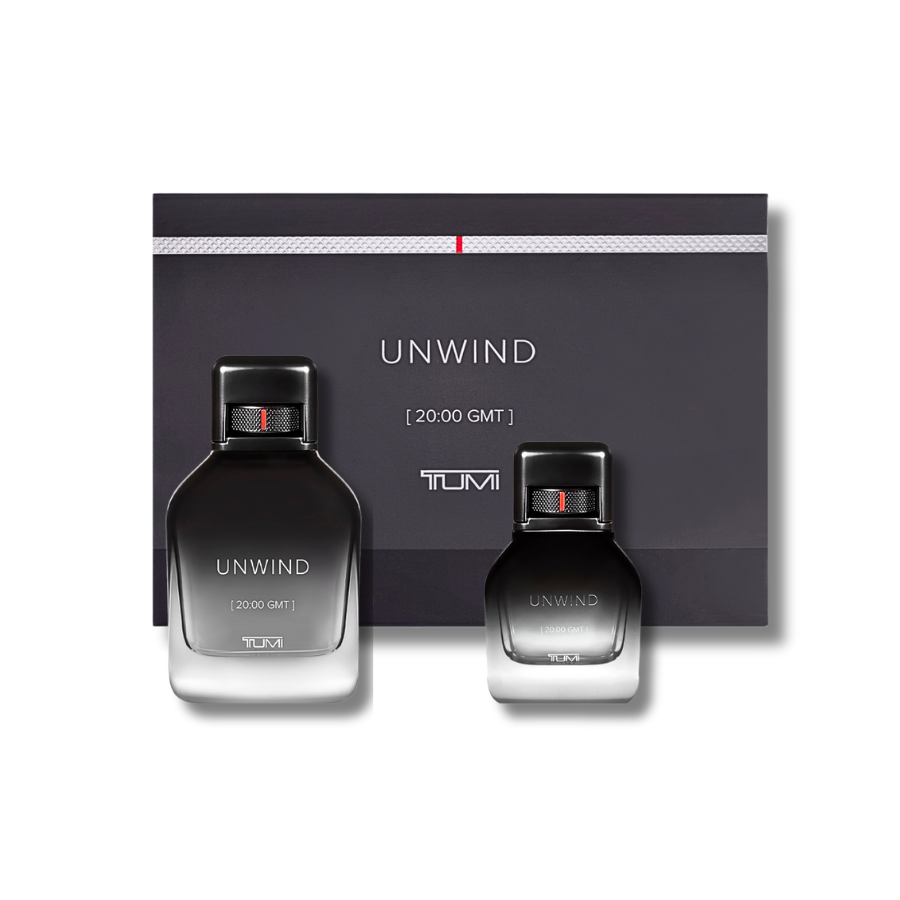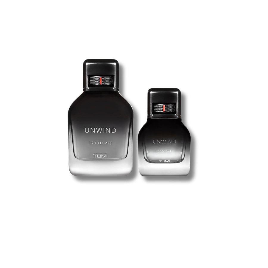 Indulge in the TUMI Unwind Gift Set featuring Eau de Parfum in 3.4FL.OZ and 1.0FL.OZ sizes, perfect for gifting or treating yourself.